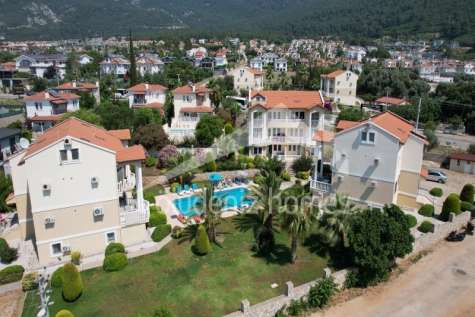 Surrounded by a large communal swimming pool and attractive well maintained landscaped gardens, this modern private apartment complex consists of three blocks of four apartments. They are quietly located in Ovacik, but only a five-minute walk from the centre of Hisaronu and the seaside resort of Oludeniz is just three to four kilometers away, The perfect location for your new home!
