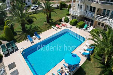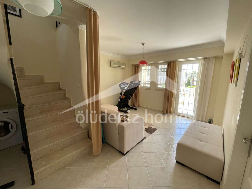 This apartment for sale in Ovacık is offered part furnished, including kitchen appliances and air-conditioning units throughout. The location is excellent, within walking distance to shops, cafes, and local transport links — just 5 minutes from Hisarönü and a short drive to Ölüdeniz Beach.