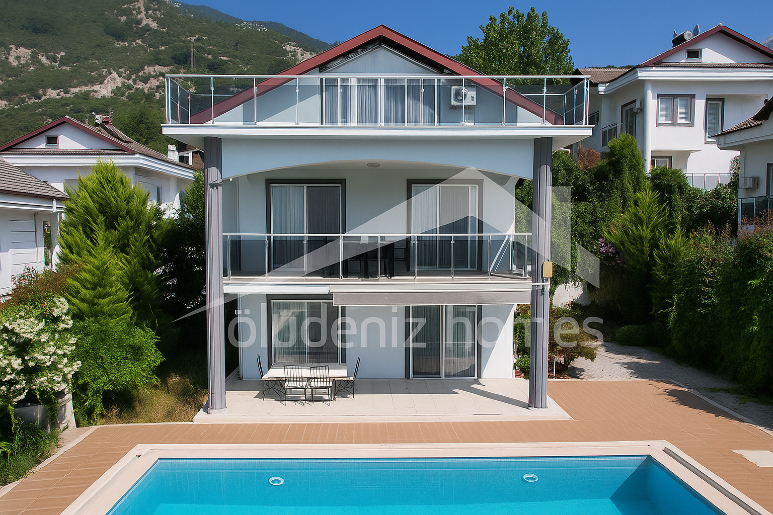 Oludeniz Homes are very pleased to offer this stunning modern villa in Ovacik for sale , peacefully situated but conveniently located for easy access to the lively holiday resort of Hisaronu and the well-known Oludeniz Beach and Blue Lagoon in the south-west of Turkey.