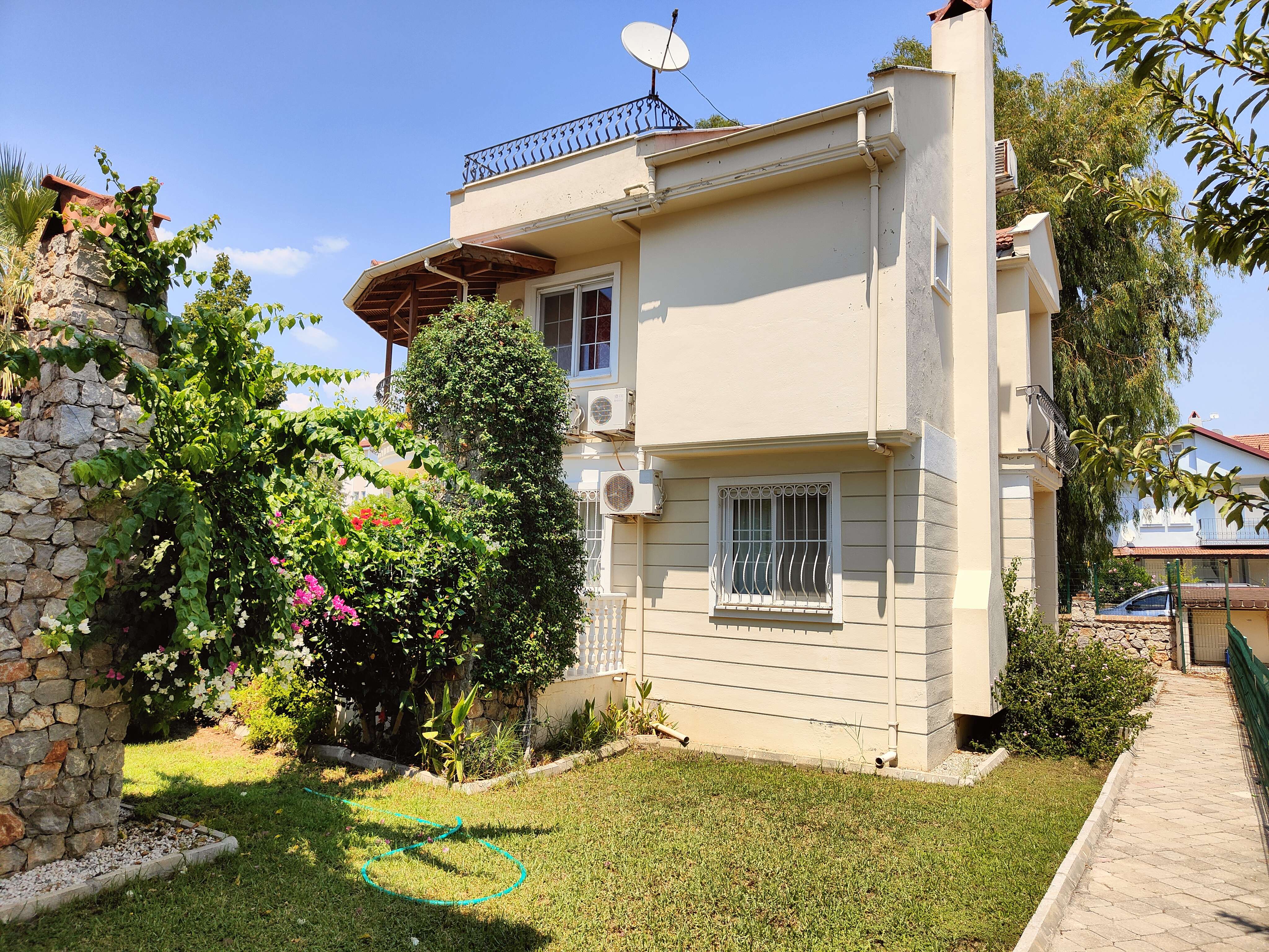 This beautiful 3 bed villa is located near the turquoise waters of the Mediterranean Sea in Southern Turkey in the increasingly popular resort of Calis, boasting stunning mountain views, large well manicured gardens and access to a communal swimming pool.