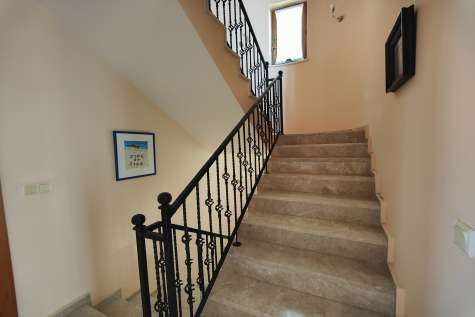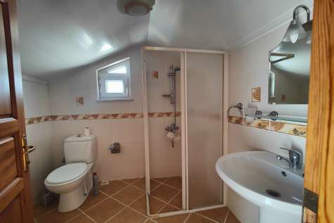 The villa has three comfortable bedrooms, two on the first floor with a shared bathroom/WC with the master bedroom on the second floor enjoying its own ensuite bathroom facility. The rooms are also spacious and boast modern and comfortable beds, wardrobes.