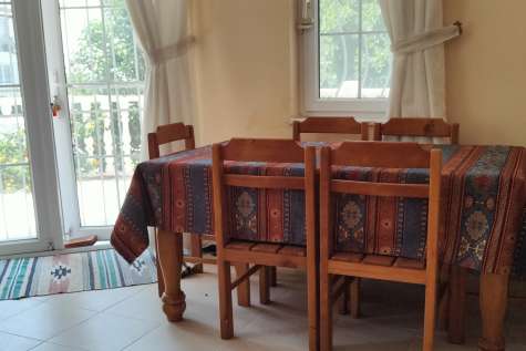 The villa is designed with a welcoming atmosphere that instantly draws guests into the comfortable and spacious living area. The sitting room features large windows, allowing for uninterrupted views of the majestic mountains that surround the area. It is tastefully decorated with plush sofas, armchairs and attractive cabinets. There is an open fireplace in the lounge, very useful for the odd winters evening if the temperatures drop slightly.