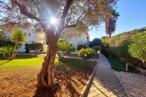Set within a secure, walled complex of only 16 privately owned apartments across three blocks, the property enjoys shared use of a large communal swimming pool, a shallow children’s splash pool, beautifully maintained gardens, and private off-road parking. The complex sits on a generous 4,759m² plot, offering a peaceful retreat despite its proximity to shops, restaurants, bars, and local transport links.