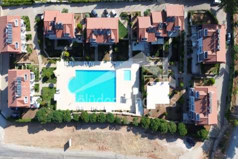 The apartment forms part of a carefully planned residential complex occupying a substantial 6,529 m² land plot. Unlike many higher-density developments in the region, this site comprises just seven residential blocks and a total of 30 apartments, ensuring generous spacing between buildings and preserving open views of the surrounding mountains and countryside.