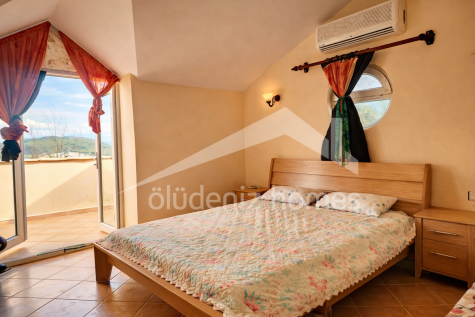 Upstairs, the property continues to impress with a second bedroom, a bathroom, and access to a private terrace. This upper terrace offers an elevated vantage point, ideal for enjoying peaceful mornings or evening sunsets, with views stretching towards the iconic Babadağ Mountain and even glimpses of the distant sea towards Ölüdeniz.