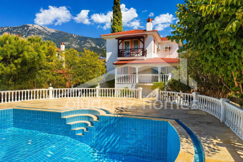 Offered for sale exclusively by Oludeniz Homes this substantial and impressive private villa with large garden (720 sqm) has SIX LARGE BEDROOMS AND SEVEN BATHROOMS INCLUDING A FULLY TILED HAMAM ON THE TOP FLOOR. The large gardens include a remarkable vegetable plot and fruit trees but also impressive is the large private swimming pool (55sqm), the secure off road parking for several vehicles, and the solid stone boundary wall surrounding the property.